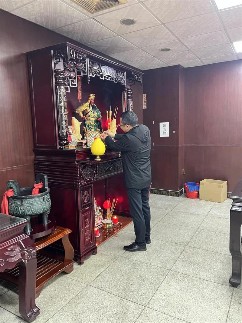 一大早,何總及公司管理團隊,與財神爺和壬寅年新春吉祥物福虎一起,上香祈福,誠心祈盼新的一年虎運當頭,財源廣進!大家共同虔誠祝愿毅通織造生意興隆、財源亨通、虎年大吉!